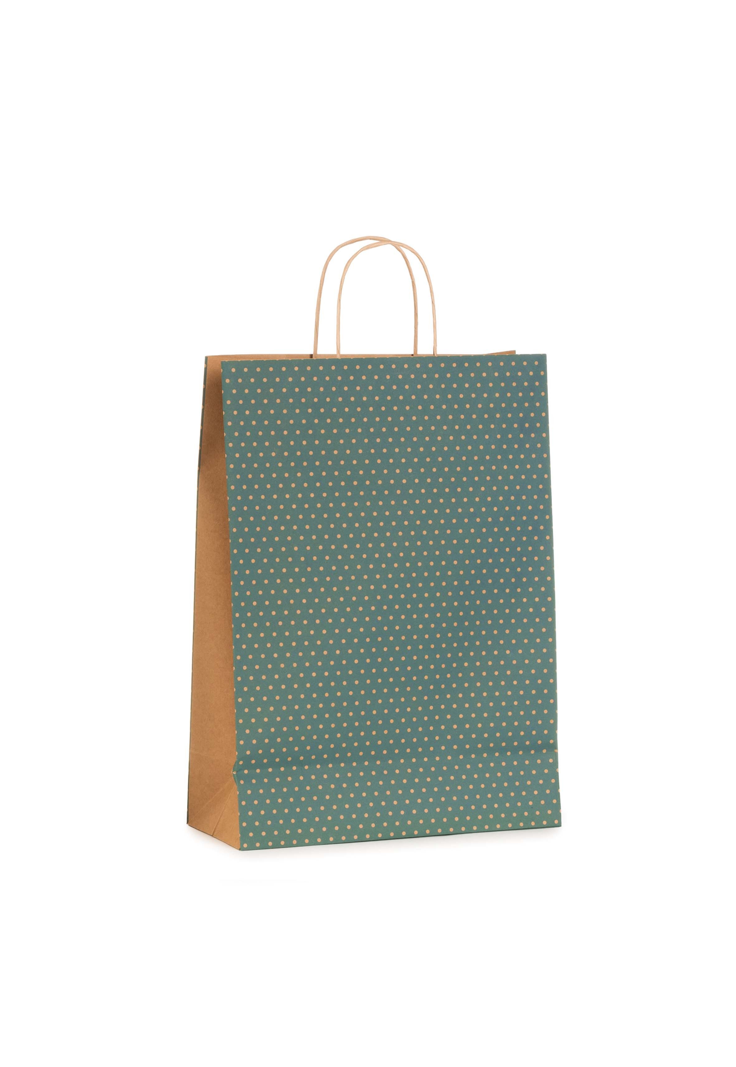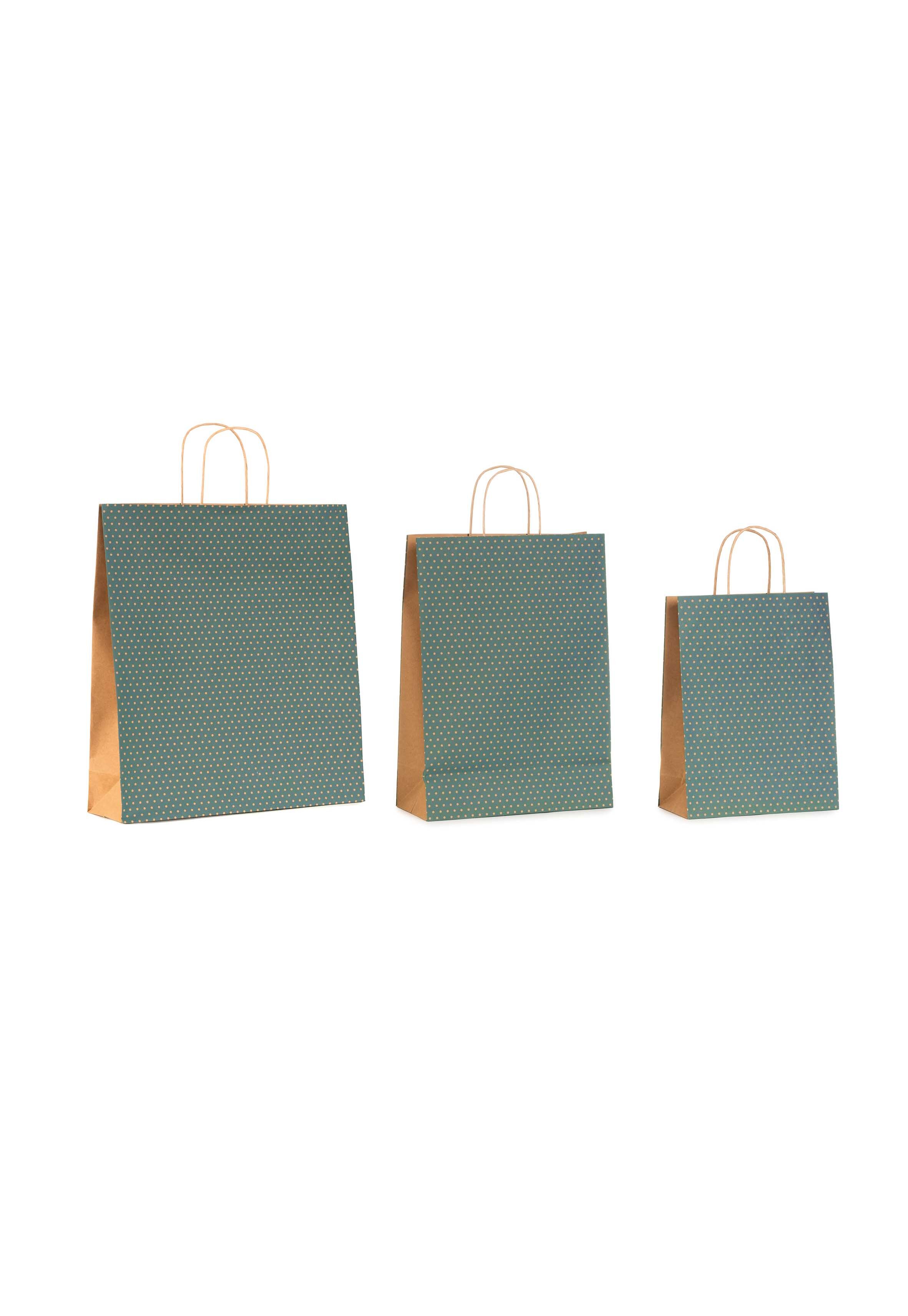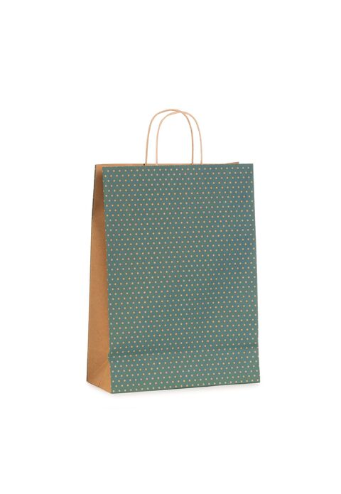 Shopper Carta Dots Petrolio con Maniglia Intrecciata