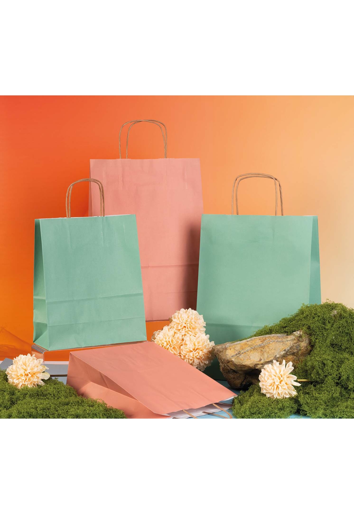 100 Shopper Carta con Maniglia Intrecciata Colori Assortiti