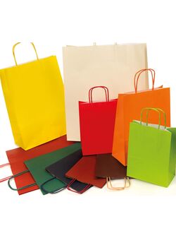 - Queste shopper sono realizzate in carta monocolore con effetto millerighe