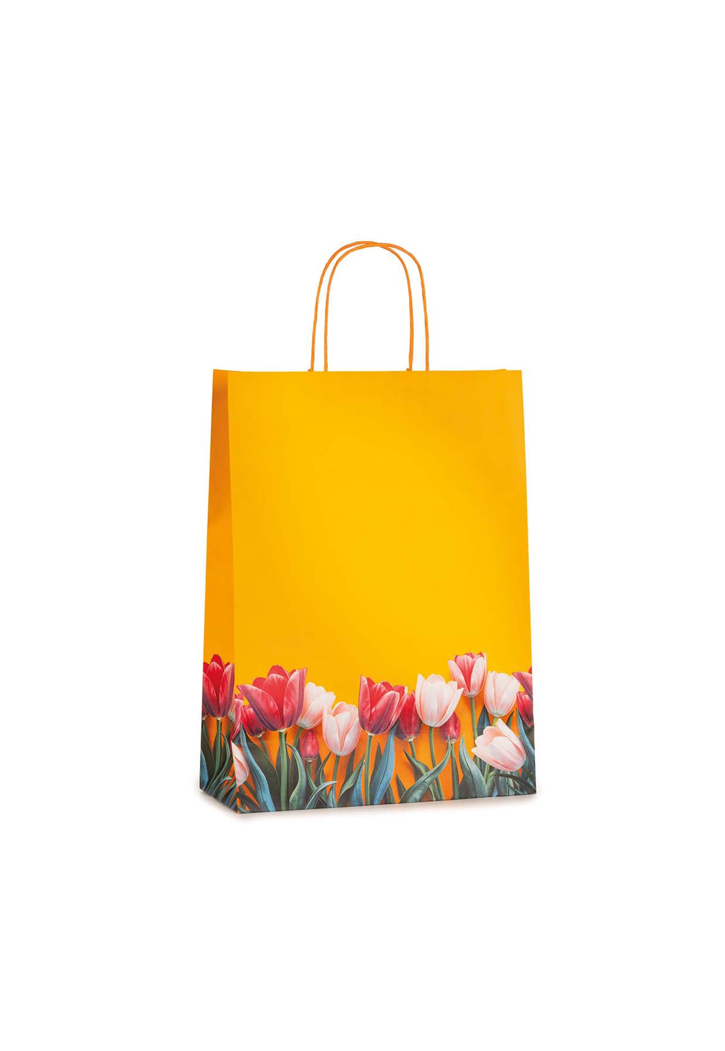 Shopper Carta Tulipani con Maniglia Intrecciata