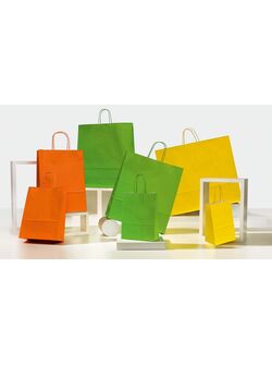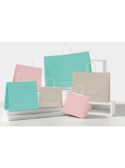 100 Shopper Carta con Maniglia Intrecciata Colori Assortiti