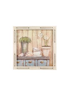 Quadro in Legno Bianco Vaso Fiori con Fregio