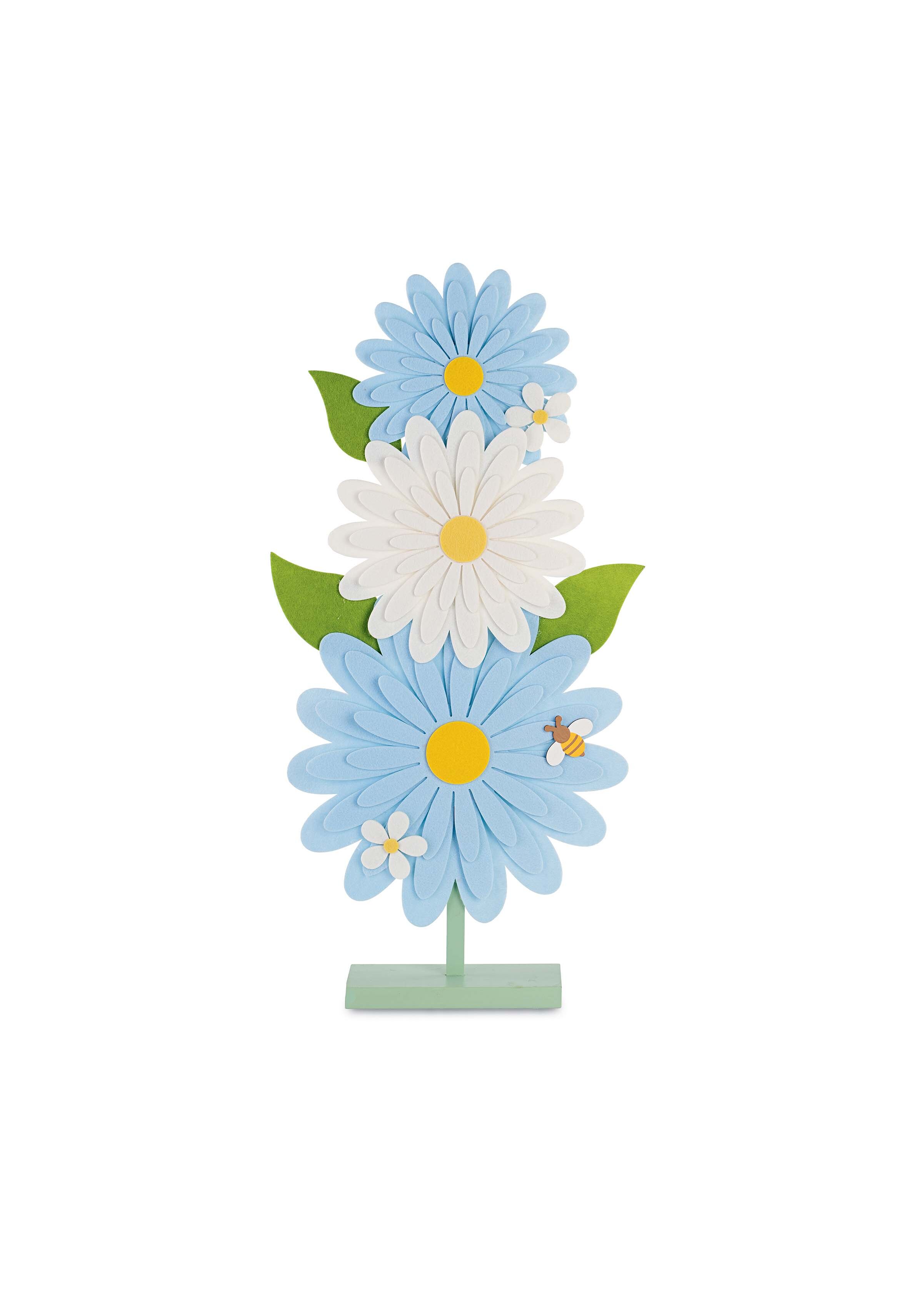 Totem 3 Margherite Celesti e Bianche in feltro con Base